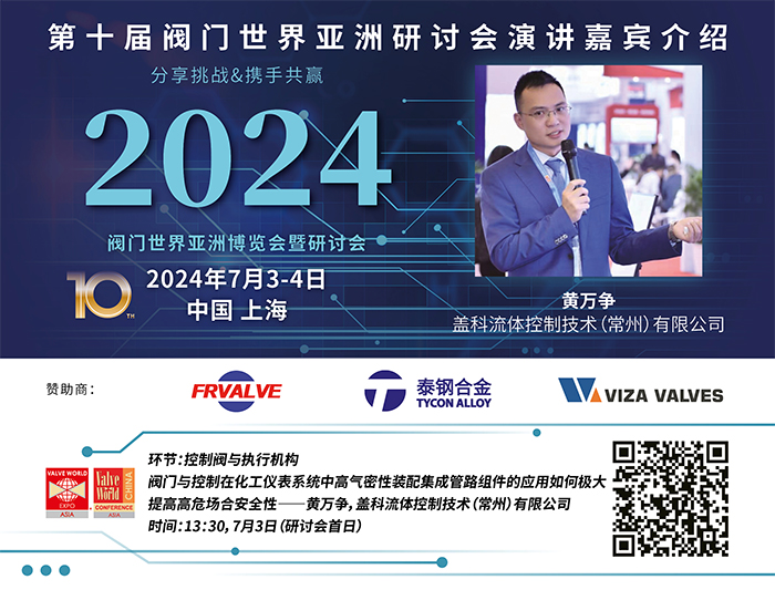 GEKO閥門與控制中國分公司總經理黃萬爭榮幸成為2024研討會演講嘉賓,在控制閥與執行機構環節,闡述:閥門與控制在化工儀表系統中高氣性裝配集成管路組件的應用如何極大提高高危場合安全性...